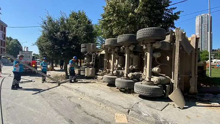 Faciadan dönüldü: Hafriyat kamyonu parkın duvarına çarparak devrildi