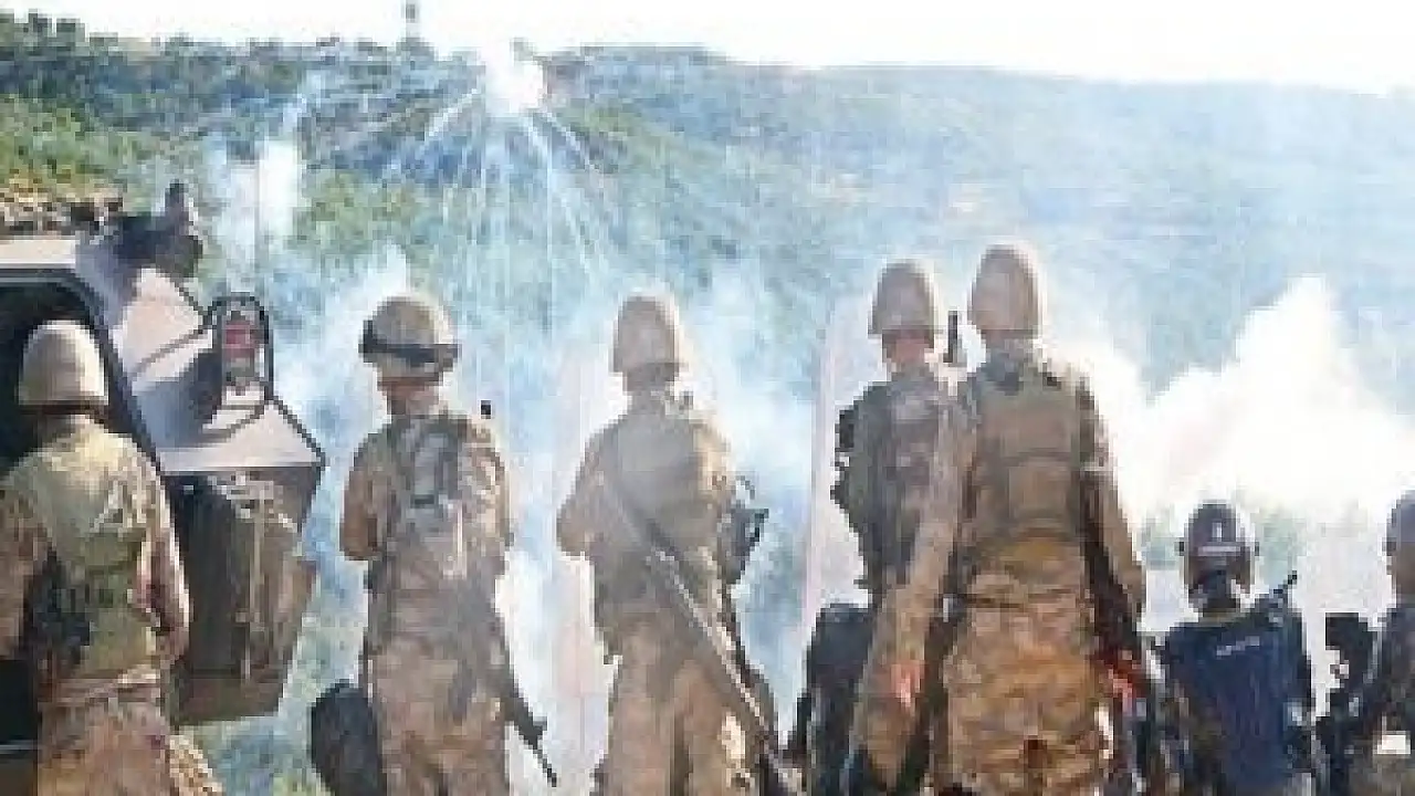 Hendek kazıp, yolu kapatan göstericilere akşam saatlerine güvenlik güçleri müdahalede bulundu. Göstericiler de şantiyede çalışan ellerine bağlayıp kapattıkları çadırın çevresinden askerlere saldırmaya devam etti. Bu sırada çadırın çevresindeki farklı noktalardan güvenlik güçlerinin üzerine uzun namlulu silahlarla ateş açıldı. Açılan ilk ateşte bir uzman çavuş ile bir asker kurşunla yaralanırken, bir asker de kurşunlardan kurtulmak için kaçarken düşerek yaralandı. Yaralı askerler hemen Sikorsky helikopterle bölgeden alınarak kaldırıldıkları Diyarbakır Asker Hastanesi'nde tedavi altına alındı.