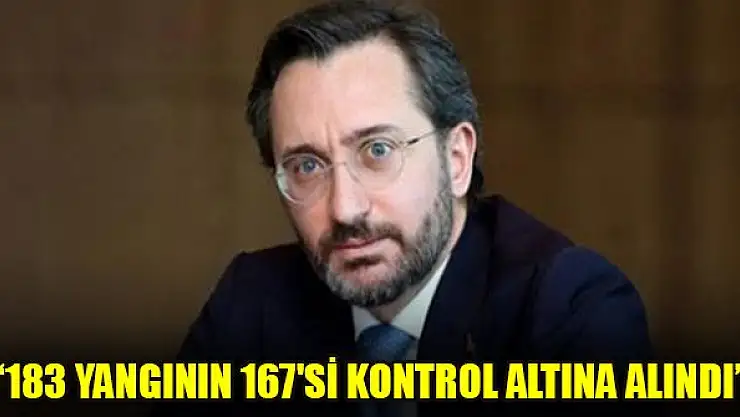 İletişim Başkanı Fahrettin Altun, yurt genelindeki yangınlara ilişkin, 'Devletimizin ilgili tüm kurumları büyük bir özveriyle yangınla mücadele ediyor. 40 ilimizde çıkan 183 yangının 167'si kontrol altına alındı. 16'sı devam ediyor' dedi.
