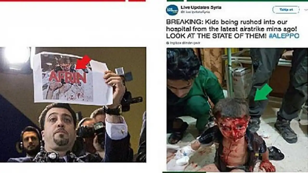 Fake and old images displayed during a joint press conference of German-Turkish leaders to smear Afrin operation
