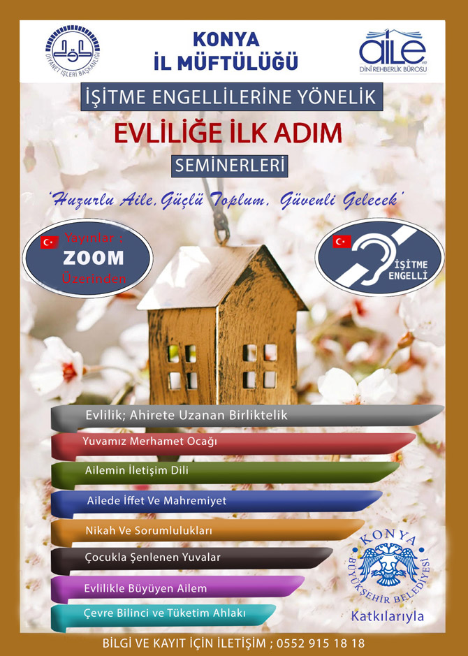 With the increasing problems in marriage during the pandemic period, the Konya Provincial Mufti gives online seminars to support the engaged and married couples spiritually. Informing that they also give these seminars to hearing-impaired couples, Konya Deputy Mufti Betül Şimşek Öztürk said, “We realized that our deaf brothers got married and sometimes had problems in their families. In addition to our deaf siblings, we planned to provide training for our deaf siblings by our staff who know sign language ”and called for hearing impaired couples to participate in the training.
