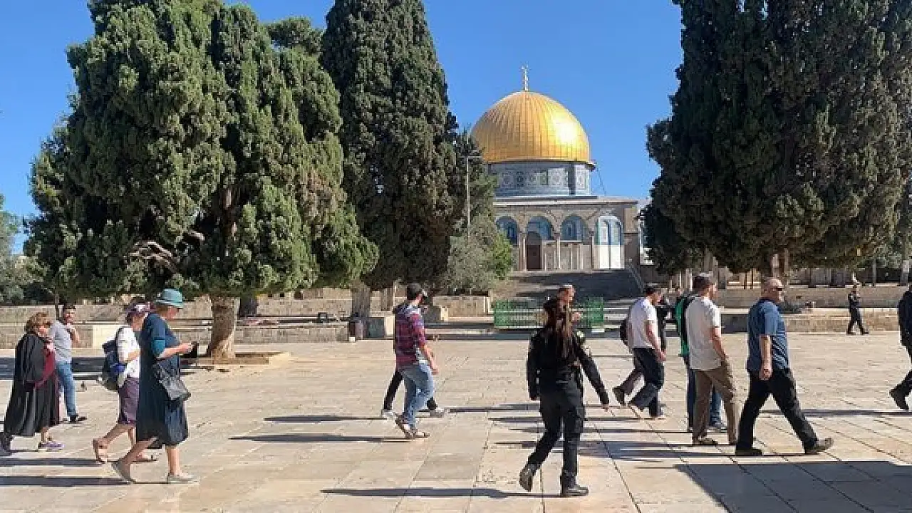 Açıklamada, İsrail polisi korumasındaki grubun, Harem-i Şerif'in avlularında dolaştıktan sonra kutsal mabetten ayrıldığı kaydedildi.