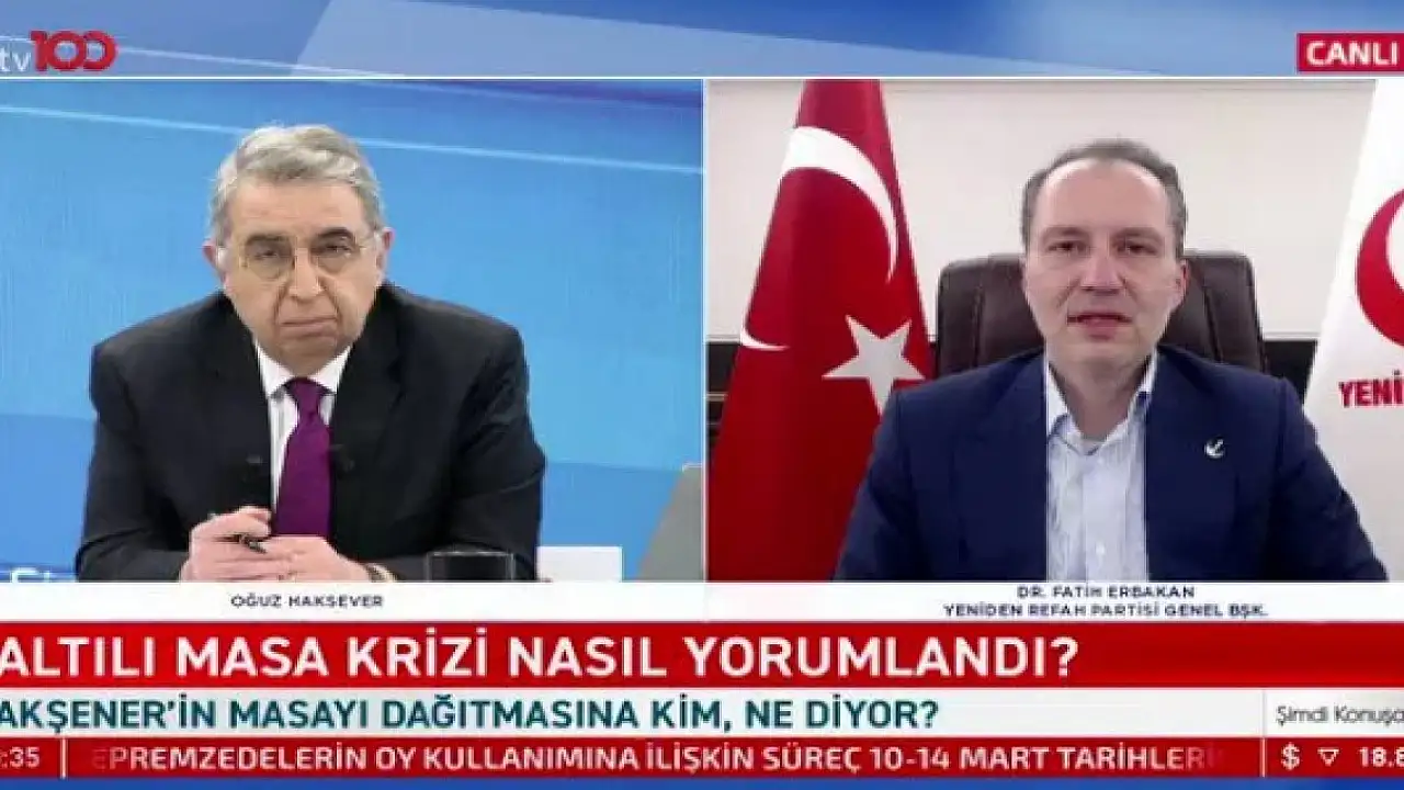 Yeniden Refah Partisi Genel Başkanı Fatih Erbakan, Tv100'de katıldığı canlı yayında gündeme ilişkin değerlendirmeler yapıp ittifak ile ilgili soruya yanıt verdi.