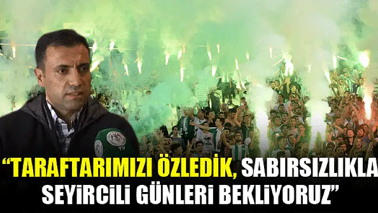 Konyaspor Kulübü Başkanı Fatih Özgökçen, 'Taraftarımızı özledik. İnanıyoruz ki, taraftarımız da takımımızı özlemiştir. Sabırsızlıkla sahamızda seyircili maç seyretme günlerinin gelmesini bekliyoruz' dedi.