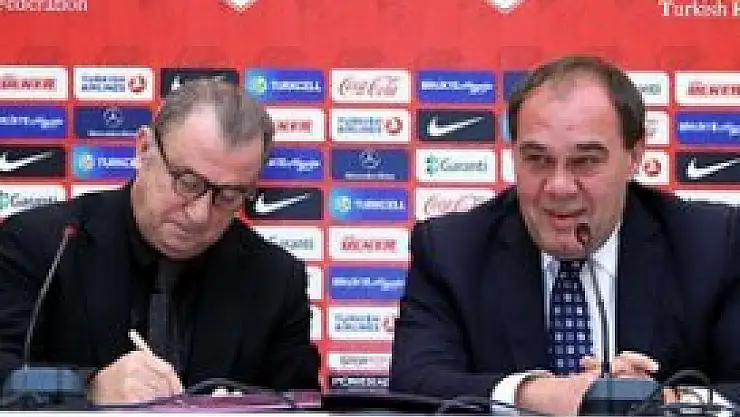 ''Hocamızın ağzından bir laf çıkmıştı ki Türkiye hocamızın yapısını bilir, 'Mayıs'a kadar imza atmayacağım' diye. Hocamız, bu lafında diretti. Bize göre de haklıydı. Ancak bir kurumda işler her gün yürüyor. Yürümesi de gerekiyor. Hocamız da hemfikir. Geride bile kaldık. Yapmamız gereken çok işimiz var. Onun için yönetim kurulu olarak hocamızı ikna ettik ki 'İmzayı atalım, ağzından çıkan lafın sorumluluğunu da ben ve yönetim kurulundaki arkadaşlarımız alalım' diye. Hocamız da bunu kabul etti. Tekrar teşekkür ediyorum. Hocamız ile beş artı iki yıllık bir mukavele yaptık. İki yılın opsiyonu federasyonumuza ait. Bu kadar uzun bir vade, belki Türkiye'de veya Avrupa'da bir ilk. Bunun sebebi 90 yıllık federasyon tarihinde 57 hocanın geçmesi. İstatistiklere baktığımız vakit teknik direktörler ortalama 1,6 sene kalıyor. Demekki istikrarı sağlayamadığımız sürece başarı gelmiyor. Bu, takımlarımızda da aynı. Takımlarımıza baktığımız vakit hoca süresi çok kısa, orada da istikrarı yakalayamıyoruz. Bizim hedefimiz bir turnuvaya katılıp ya da katılmamak değil. Türk Milli Takımı, beş sene veya sekiz sene arayla bir turnuvaya katılabiliyor. Bizim hedefimiz her turnuvaya kalıcı bir takım yaratmak. Bu da ancak istikrarla olur. Bu da hocamızla olur diye düşündük. Hocamız da bunda hemfikir. Hem Türkiyemize hem milli takımıza hem de hocamıza hayırlı olmasını diliyorum.''