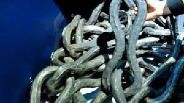 Toplam uzunluğu 550 metre olan baklalar halindeki zinciri, suyun üzerinde batmaması için dubalar taşıyordu.