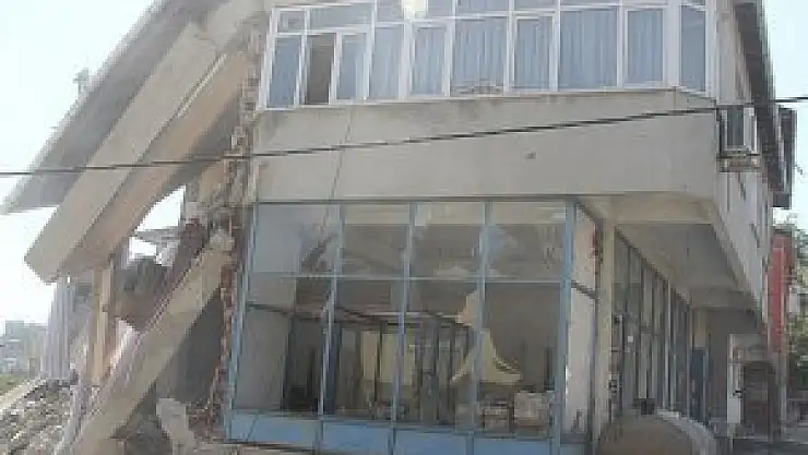 Suriyeli sığınmacıların kaldığı iddia edilen binanın enkazını kaldırma çalışması, iş makinesi yardımıyla devam ediyor. Bir grup Suriyeli de itfaiyenin çalışmasını izliyor.