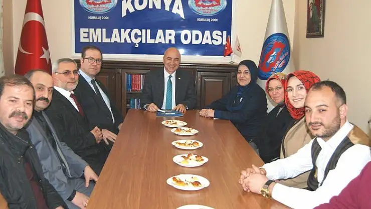 Meram Belediye Başkanı Fatma Toru, AK parti Meram İlçe Başkanı Abdülkadir Özöğür ve yanındaki heyet Konya Emlakçılar Odası Başkanı Sedat Altınay ve yönetim kurulu üyelerini odada ziyaret ettiler.