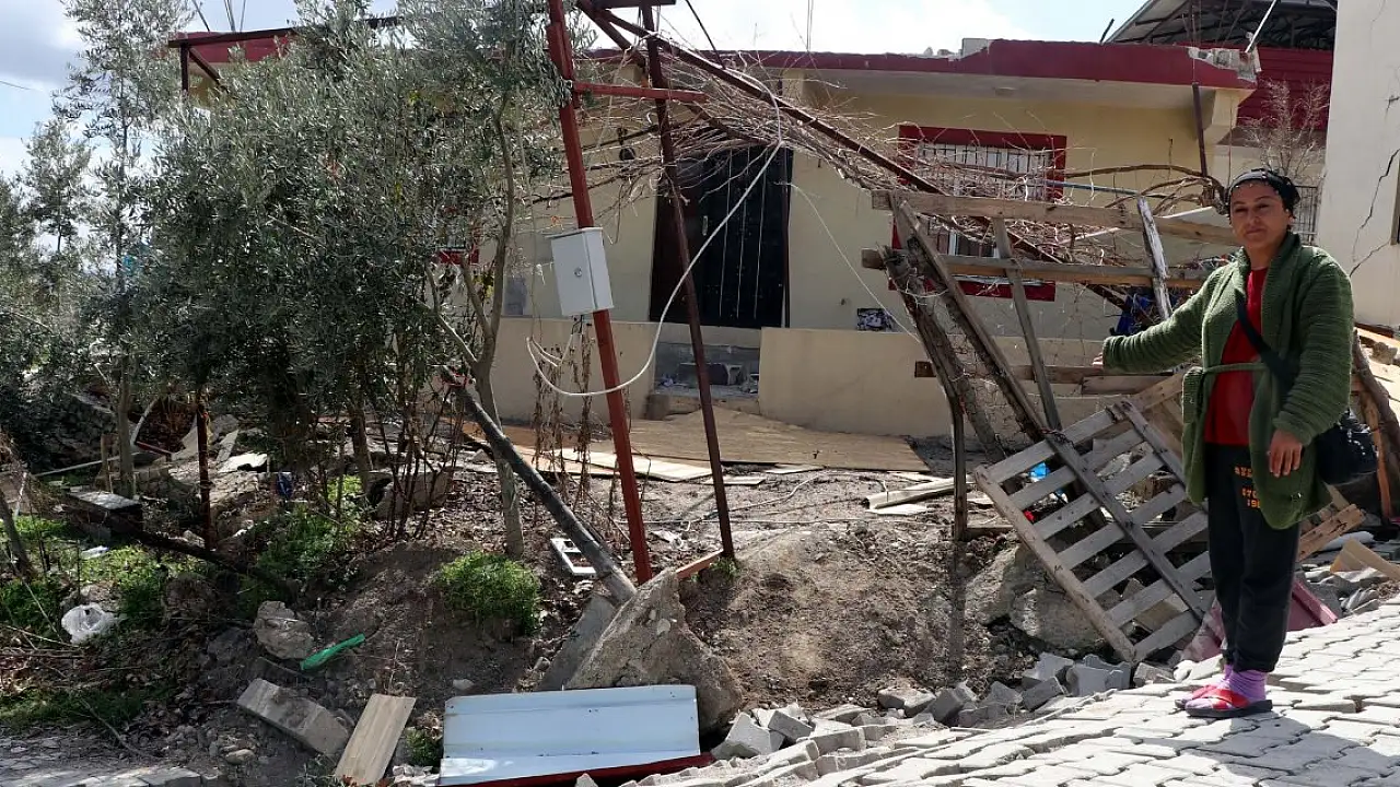 Depremde müstakil evlerinin yönünün değiştiğini söyleyen Renkliöz, "2 evin arasında sadece 1 kişinin geçebileceği kadar boşluk vardı. Deprem, evin temelinden yerini değiştirmiş. Şu an evin altında boşluk var. Acil yıkım kararı verildi. Sürekli artçı depremler olduğu için burada durmamız bile riskli. Artçı depremler olduğunda yarım kalan evler de yıkılıyor. Yetkililer bu bölgede inceleme yaptı. Dün yine geldiler. Fay hattının kırığı da evimin altında olmuş. Yetkililer "İyi ki burada yokmuşsunuz yoksa hiç iyi olmazdı" diyorlar" dedi.