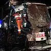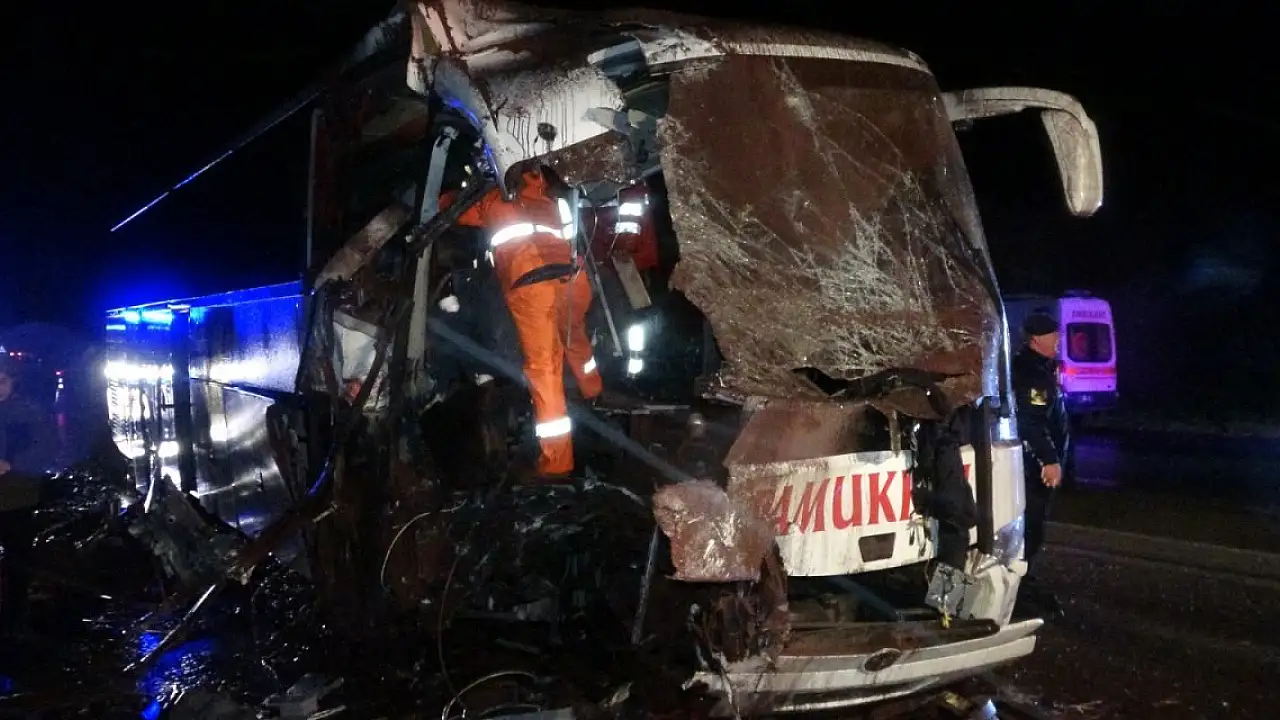 Çanakkale'nin Lapseki ilçesinde, yolcu otobüsünün kum yüklü hafriyat kamyonuna arkadan çarptığı kazada 3'ü ağır 13 kişi yaralandı.