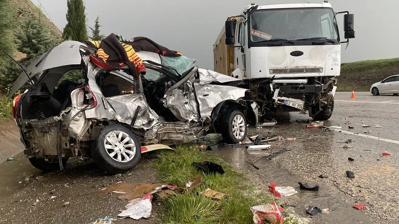 Adıyaman'da, kamyon ile otomobilin çarpışması sonucu meydana gelen feci kazada 2 genç arkadaş hayatını kaybetti.