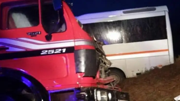 Çanakkale'nin Gelibolu ilçesinde öğrenci servisi ile kamyonun çarpışması sonucu 13'ü öğrenci 15 kişi yaralandı.