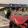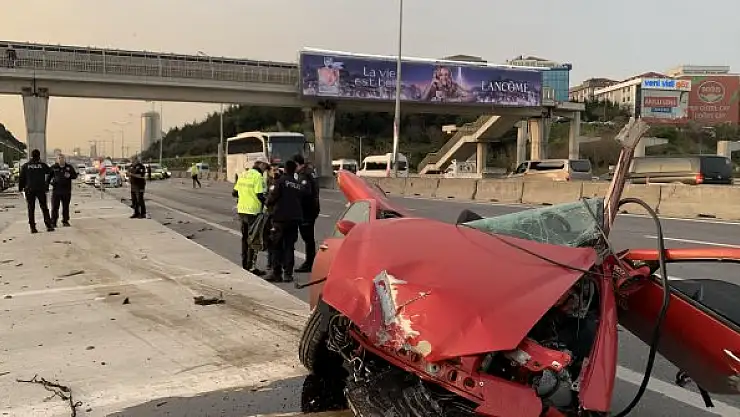 KADIKÖY D-100 Karayolu'nda üst geçidin ayağına çarpan otomobil ikiye bölündü.