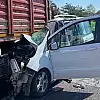 Tekirdağ Ergene'de kontrolden çıkan hafif ticari araç, tırın altına girdi.