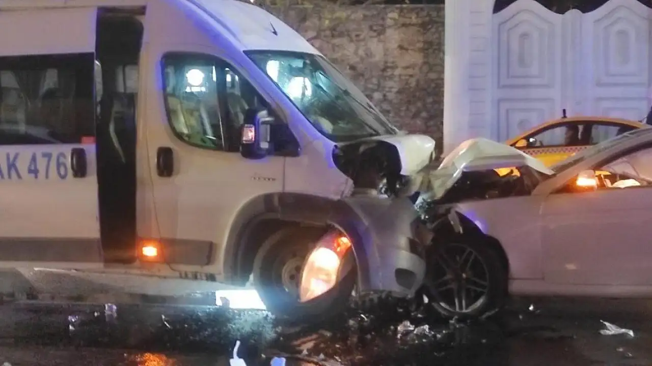 İstanbul Beşiktaş'ta servis minibüsüyle otomobilin çarpışması sonucu 9 kişi yaralandı.