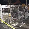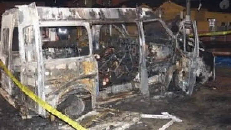 Yangını söndüren itfaiye ekipleri, minibüs içerisinde yanarak yaşamını yitiren 5 kişinin cesetlerini araçtan almak için çalışma başlattı.