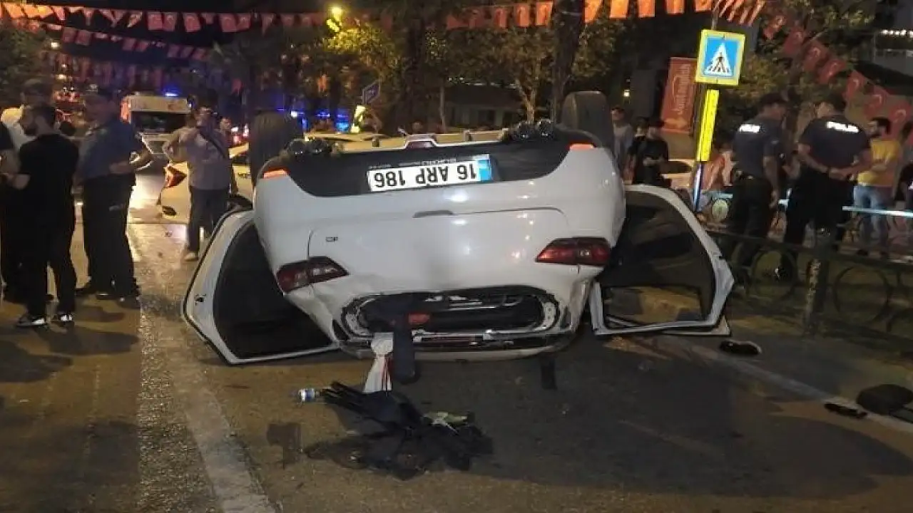 Kaza, merkez Osmangazi ilçesi Fevzi Çakmak Caddesi'nde yaşandı. Edinilen bilgiye göre, seyir halindeki Sami Pastalcı yönetimindeki 16 ADS 108 plakalı otomobil ile Fahrettin Selvi kontrolündeki 16 SLV 88 plakalı otomobilin arasından makas atarak geçmeye çalışan, kimliği henüz bilinmeyen sürücünün idaresindeki 16 ARP 186 plakalı otomobil zincirleme kazaya sebep oldu. Çarpışmanın etkisiyle makas atmaya çalışan otomobil refüjdeki demir korkuluklara vurarak yola devrildi. Kaza sonrası olay yerine çok sayıda polis, ambulans ve itfaiye ekibi sevk edildi. Araçta sıkışan Ahmet Kaydı ve Emincan Kekik, itfaiye ekiplerinin yaklaşık yarım saat çalışması neticesi bulundukları araçtan çıkarılıp sağlık görevlilerine teslim edildi. Sağlık ekipleri olay yerinde yaptığı ilk müdahalenin ardın yaralıları Çekirge Devlet Hastanesine kaldırdı. Ahmet Kaydı'nın durumunun ağır olduğu öğrenilirken, araç sürücüsünün olay yerinden kaçtığı iddia edildi.