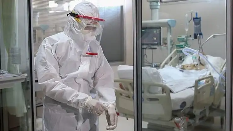 Kovid-19'un kendilerine bulaşmasını önlemek için de hassas davranan sağlıkçılar, tulum, önlük, maske, gözlük ve siperlikle koruyucu tedbirlerini alıyor. Üst üste maskeler ve siperlik takan, önlüklerin üzerine tulum giyen sağlık çalışanları, solunum cihazına bağlı hastanın nefes alabilmesi için mücadele veriyor.