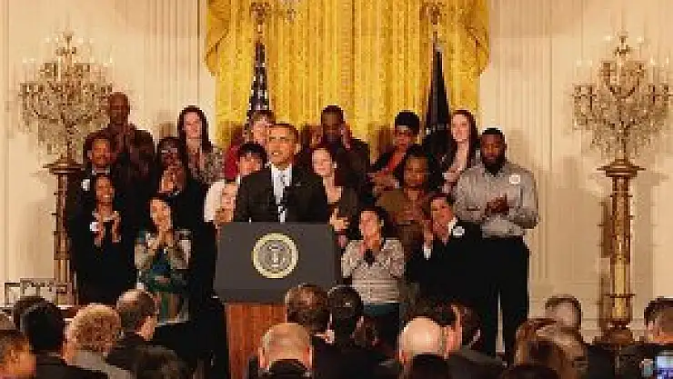 Bu nedenle federal çalanlar için asgari ücreti saat başına 7,25 dolardan 10,10 dolara çıkarma kararı aldıklarına değinen Obama, büyüyen ekonominin çalışkan insanları ödüllendirmesi gerektiğini kaydetti.