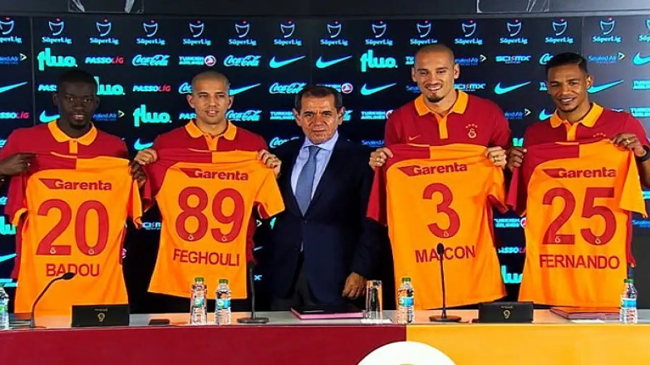 Galatasaray'da yeni transferler Ndiaye, Feghouli, Maicon ve Fernando için imza töreni düzenleniyor.