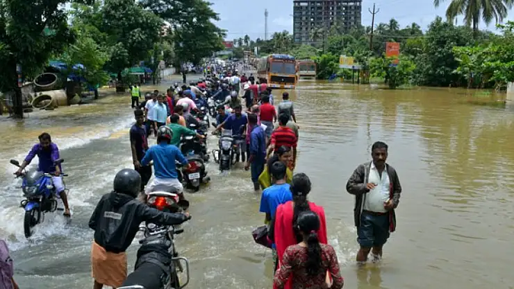 Kerala eyaletinde, aşırı yağışlar nedeniyle barajlar ve nehirler taştı, ana yollar ve köprüler çöktü, evler selde sürüklendi.