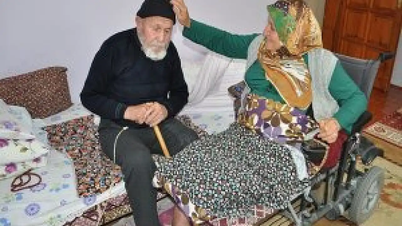 Niğde'de felç nedeniyle tekerlekli sandalyeye mahkum olan Fadime Soyer, engeline rağmen yatalak babasına bakıyor.
