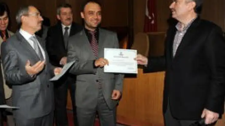 Başkan Akyürek, konuşmanın ardından 4 ay süren hizmet içi eğitim seminerine katılan personele katılım belgelerini takdim etti.