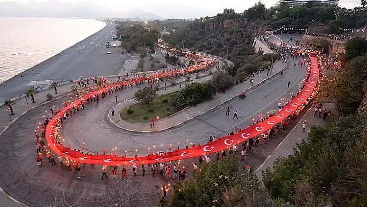 Muratpaşa Belediyesi ve Cumhuriyet için Antalya El Ele Platformu tarafından "10'uncu yıl ruhu" temasıyla organize edilen Fener alayı, Konyaaltı Caddesi'ndeki varyantta başladı. Ellerinde fenerler ve Türk bayrakları taşıyan çok sayıda Antalyalı Cumhuriyet Meydanı'na yürüdü.