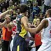 Üçüncü çeyrek temsilcimiz adına tam anlamıyla kabus gibi başladı. David Moss ve Samardo Samuels'in sayılarıyla 16 sayı geri düşen sarı-lacivertlilerde Zeljko Obradovic hakemler tarafından oyundan ihrac edilince salonda gerginlik yaşandı. Bu kriz sürecinde soğuk kalan taraf EA Milano oldu ve farkı 20'ye kadar çıkarmayı başardı. Fenerbahçe Ülker çeyrek sonunda Zoric ile hareketlense de İtalyan ekibi son on dakikaya 68-54 önde girdi. Son çeyrekte rakibine yetişmek ve oyuna yeniden ortak olmak için tüm kozlarını ortaya koyan Fenerbahçe Ülker, farkı 5'e kadar çekmeyi başardı. Ancak maçın kırılma anlarında istediğini parkeye yansıtamayan temsilcimiz grup ikincisi EA Milano'ya 82-73 yenildi. Sarı-lacivertlilerde Bojan Bogdanovic 24, Bo McCalebb 17 sayıyla oynarken EA Milano'da Moss 15, Gentile 13 sayı kaydetti. Temsilcimiz gelecek hafta Laboral Kutxa'ya konuk olacak. OLAYLAR ÇIKTI Mücadelenin 3. çeyreğinde gerginlik tavan yaptı. Sarı-lacivertlilerin Sırp başantrenörü Zeljko Obradovic hakem tarafından soyunma odasına gönderildi. Bir süre durduktan sonra tekrar başlayan mücadelede daha saniyeler geçmişken, iki takımın oyuncuları birbirine girdi. Mücadelenin hakemleri oyunu durdurdu ve oyuncuları zorlukla sakinleştirdi.
