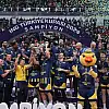 Daha sonra parkeye çıkan Fenerbahçe Bekolu oyuncular, şampiyonluk kupasını TBF Başkanı Hidayet Türkoğlu'nun elinden aldı.