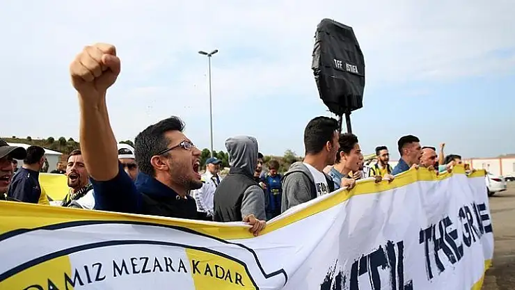 Sarı-lacivertliler, güvenlik önlemleri eşliğinde yaklaşık 30 dakika süren gösteride, "Yeter Yıldırım Demirören yeter", "Yönetim istifa" diye tempo tuttu.