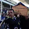 Stadın skorboardında Koray'ın, bir deplasman maçına giderken yaptığı tezahüratlar gösterildi.