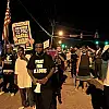 Canfield yolu üzerinde Michael Brown'ın polis tarafından öldürüldüğü yere akşam saatlerinde güller konulmasının ardından Batı Florissant caddesinde toplanan yaklaşık 150 siyahi, Ferguson polis binasına kadar yürüdü.