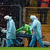 Maça devam edemeyen deneyimli kaleci, sedye ile soyunma odasına götürüldü. Bu sırada sarı-kırmızılı taraftarlar Muslera'ya tezahüratlarıyla destek oldu.