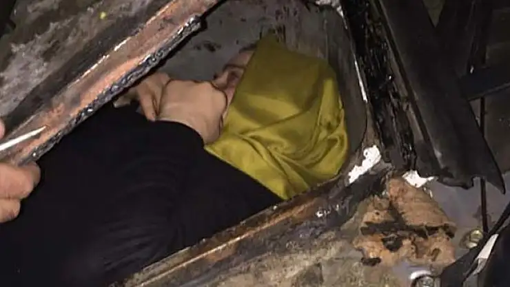 Kaynak noktalarını çekiçle ayıran ekipler, oluşturulan gizli bölmeye cenin şeklinde saklanmış kadın buldu. Gözaltına alınan kadının, FETÖ/PDY üyeliğinden yakalama kararı bulunan H.T.K. olduğu tespit edildi.