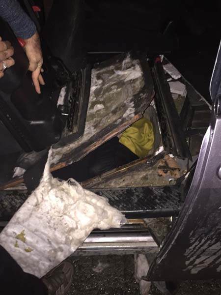 Güvenlik güçlerince yapılan detaylı aramada aracın arka koltuğunun altındaki yakıt deposunu kaplayan saca yeni kaynak yapıldığı belirlendi.