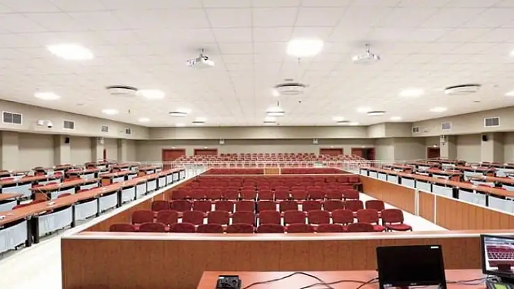 976 kişi kapasiteli en büyük duruşma salonuna sanıklar binanın bodrum katından merdivenlerle, bazı futbol sahalarında olduğu gibi duruşma salonunun ortasındaki “çıkış tüneli” gibi zeminden giriş yapıyor. Mahkeme heyeti ile cumhuriyet savcısı ayrı kapıdan, izleyiciler ile basın ise ayrı kapılardan salona alınıyor.