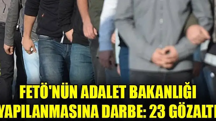 Fetullahçı Terör Örgütü'nün (FETÖ) Adalet Bakanlığı'ndaki gizli yapılanmasına operasyon düzenlendi. Ankara merkezli 7 ilde gerçekleştirilen operasyonlarda 23 şüpheli gözaltına alındı.
