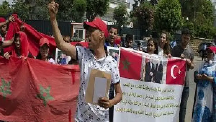 Krallık Gençlik Hareketi tarafından Türkiye'nin Rabat Büyükelçiliği önünde düzenlenen destek gösterisine onlarca Fas vatandaşı katıldı.