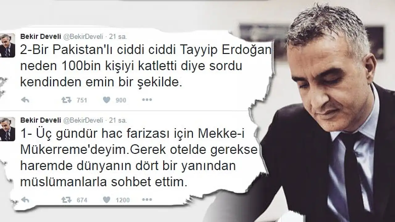 Gazeteci ve Program Yapımcısı Bekir Develi Suudi Arabistan'da hac ibadetini yerine getirirken İslam Dünyasından karşılaştığı insanların 15 Temmuz darbe süreciyle ilgili çok yanlış bilgilere sahip olduklarını Twitter hesabından paylaştı.
