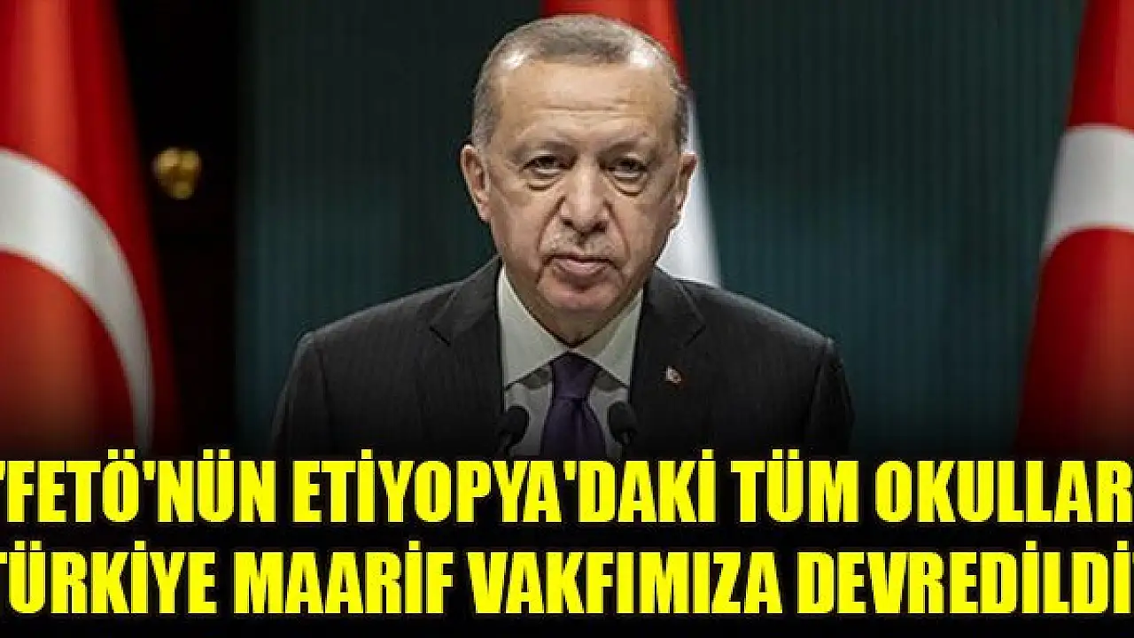Cumhurbaşkanı Erdoğan, "FETÖ'nün Etiyopya'daki tüm okullarının geçtiğimiz hafta Türkiye Maarif Vakfımıza devredildiği bilgisini paylaşmaktan memnuniyet duyuyorum" diye konuştu.