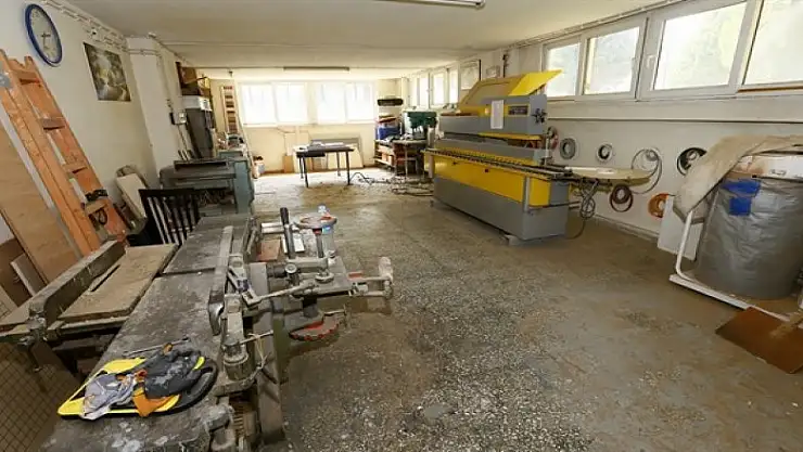 Yerleşkede yemekhanenin bulunduğu binanın alt katında çeşitli atölyeler bulundu. Ayrı salonlardaki bu atölyelerde mobilya, demir ve plastik işleri ile kapı anahtarları yapıldığı belirlendi. Bıçkı makinesinden ahşap kenar bantlama makinesine, anahtar tezgahından demir doğrama makinelerine kadar çok sayıda ekipmana ve malzemeye sahip atölyelerin maliyetinin yaklaşık 500 bin lira olduğu ve "fabrika" gibi çalıştırıldığı belirtildi.