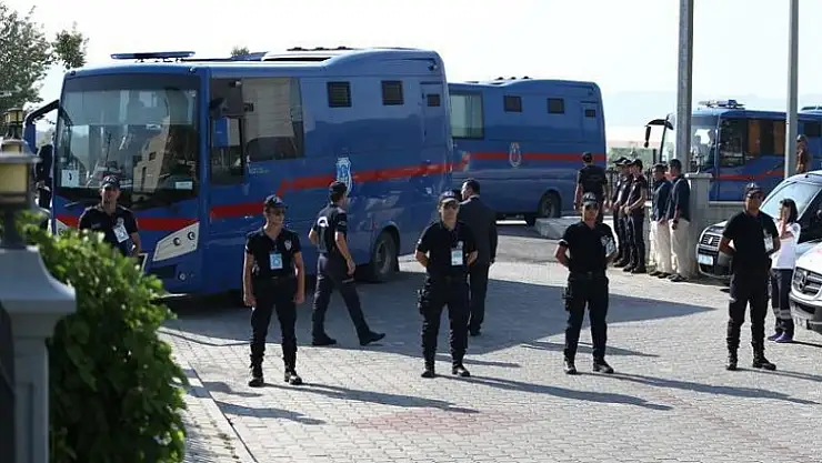 Muğla 2. Ağır Ceza Mahkemesince adliye binasındaki salonların fiziki yetersizliği nedeniyle Muğla Ticaret ve Sanayi Odasının salonunda görülen duruşmaya, tutuklu sanıklar, geniş güvenlik önlemleri altında getirildi. Sanıklar, jandarma eşliğinde mahkeme salonuna alındı.