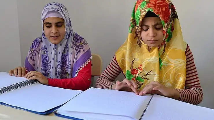 Müftülüğe ait servis araçlarıyla kentin farklı mahallelerinde evlerinden alınan çocuklar, karanlık dünyalarını Braille alfabesiyle öğrendikleri Kur'an-ı Kerim ile aydınlatmaya çalışıyor.