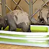 Fil yavrusunun boyutlarına göre şişme havuz hazırlayan bakıcıları, Deniz’i ilk banyosunda yalnız bırakmadı.