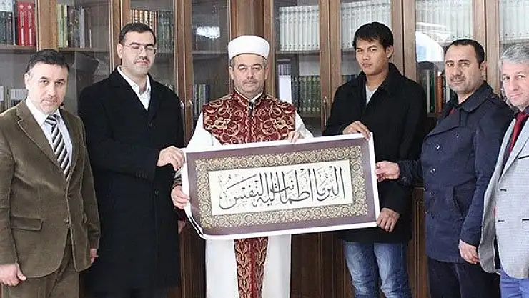 Coşkun, Sevilla'ya Diyanet İşleri Başkanlığının hazırladığı üzerinde ayet ve hadisin yazılı olduğu tablo hediye etti.