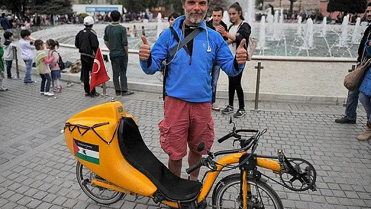 İtalya'nın başkenti Roma'dan bisikletiyle hareket eden ve İstanbul'a gelen Di Blasio, AA muhabirine yaptığı açıklamada, turu Filistin halkının özgürlüğü için gerçekleştirdiğini söyledi.
