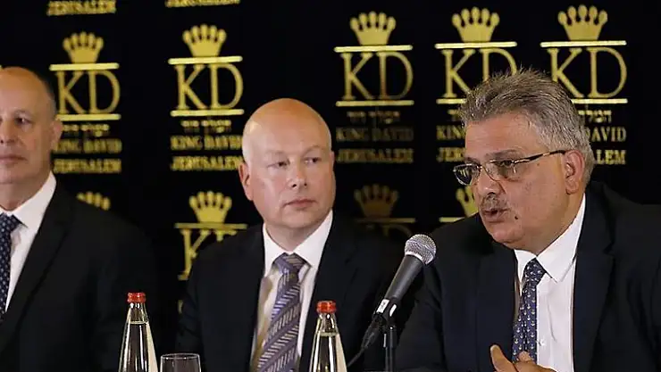 ABD Başkanı Donald Trump'ın Uluslararası Müzakereler Özel Temsilcisi Jason Greenblatt, Batı Kudüs’teki King David Otelinde Filistin Su İdaresi Başkanı Mazin Guneym ve İsrail Bölgesel İşbirliği Bakanı Tzachi Hanegbi ile ortak basın toplantısı düzenledi.