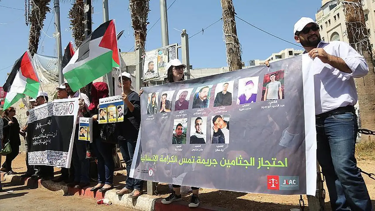 Gazze Şeridi'nde bir araya gelen onlarca Filistinli, yakınlarının İsrail tarafından alıkonulan naaşlarını talep etti