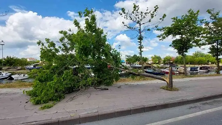 Meteoroloji Müdürlüğü yetkililerinin uyarısının ardından gece saatlerinde etkili olan fırtına ağacı devirdi.